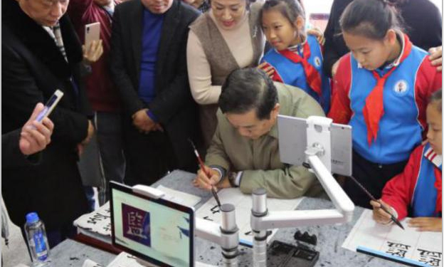 2018年12月与2019年9月,时任中国书法家协会主席苏士澍先生前往大连瓦房店文化小学和北京师范大学实验小学考察调研京师书法云教室。